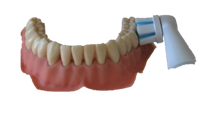 Zet je tandenborstel loodrecht tegen het tandoppervlak, zoals eerder al werd geoefend. Laat de tandenborstel 5 tellen per tand zijn werk doen en poets tand per tand. Je maakt hierbij een kleine cirkelvormige beweging. Na 5 tellen verplaats je hem naar de volgende tand. Zo ga je de hele tandenboog, zowel binnen- als buitenkant af. Op de bovenkant laat je de tandenborstel 5 tellen stilstaan.