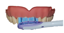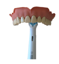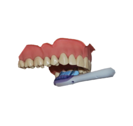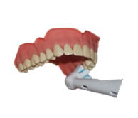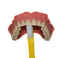 Zet je tandenborstel loodrecht tegen het tandoppervlak, zoals eerder al werd geoefend. Laat de tandenborstel 5 tellen per tand zijn werk doen. Na 5 tellen verplaats je hem naar de volgende tand. Zo ga je de hele tandenboog, zowel binnen- als buitenkant af. Op de bovenkant laat je de tandenborstel 5 tellen stilstaan.