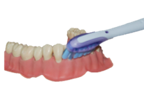 Probeer hierbij de hoek van 90° aan te houden en tot tegen het tandvlees te poetsen. Dit lijkt makkelijk, maar oefen dit met een spiegel.